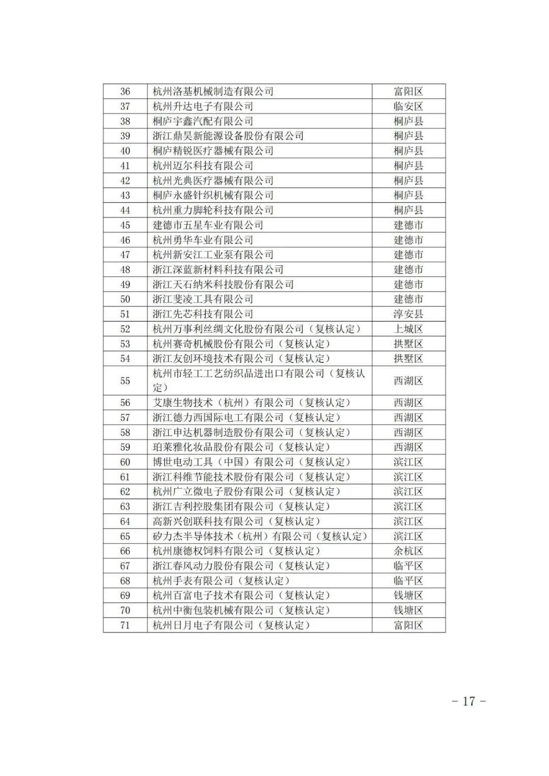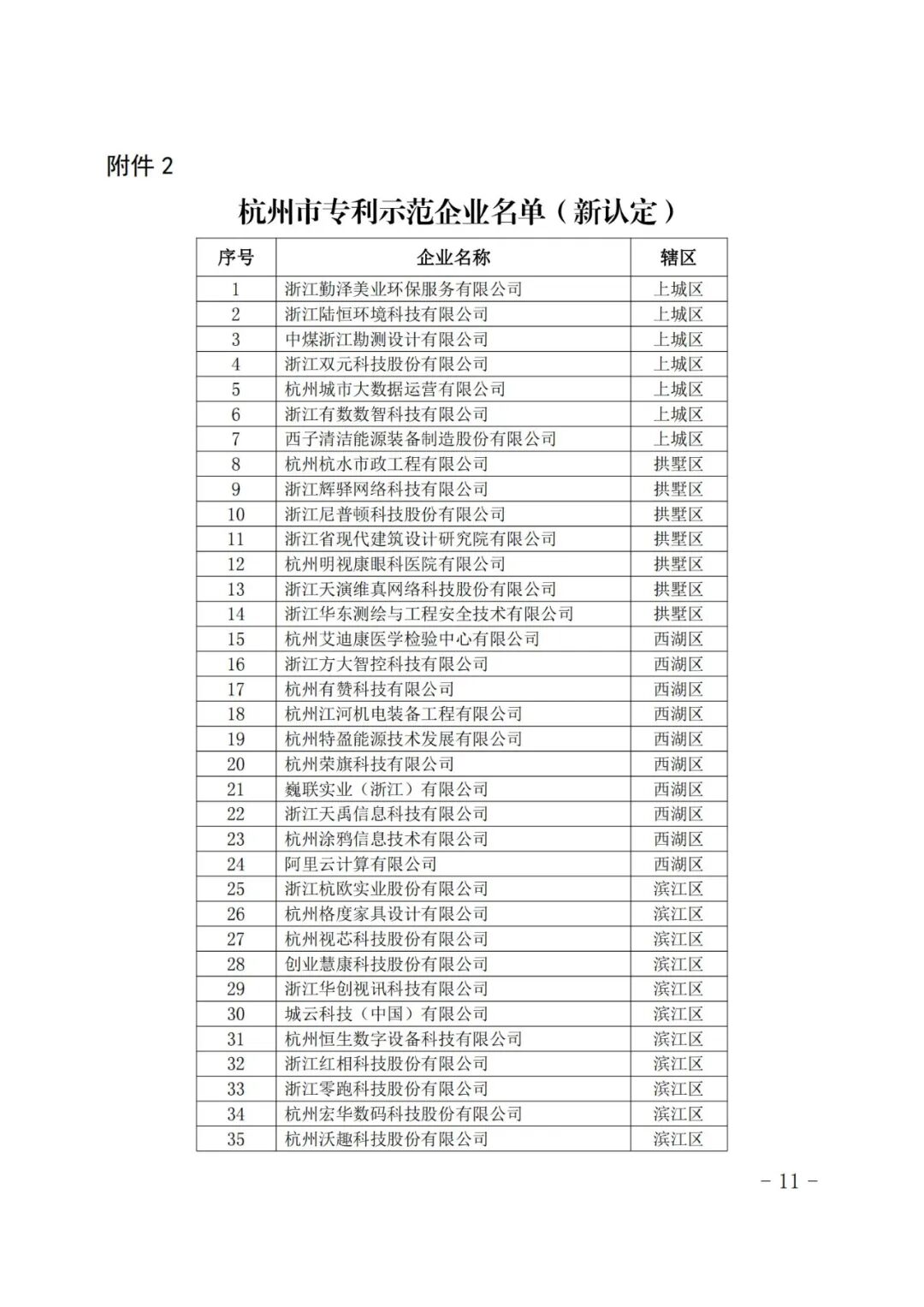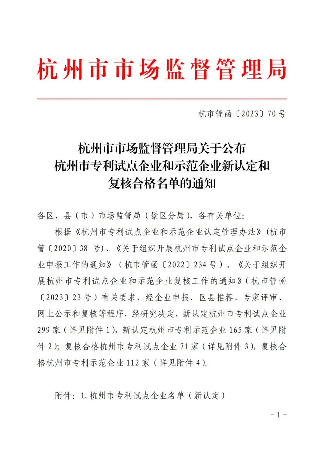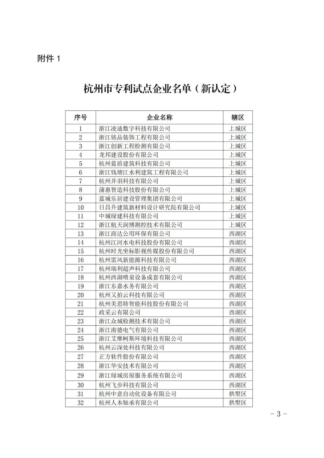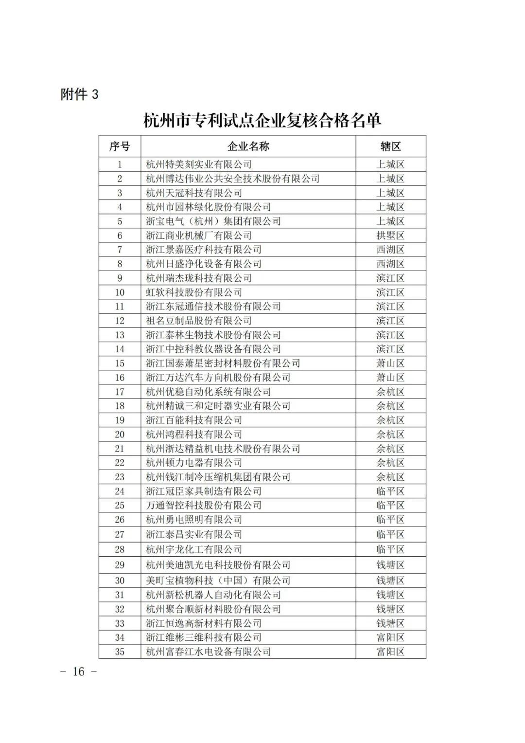 关于公布杭州市专利试点企业和示范企业新认定和复核合格名单的通知